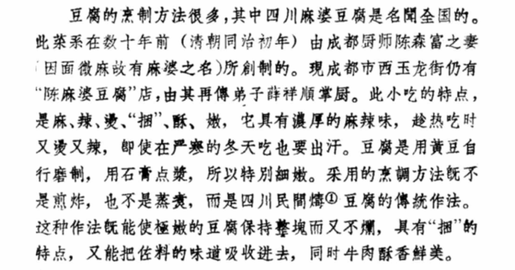実は麻婆豆腐で味わいを説明する「6文字」の初出は「中国名菜譜 第七編 四川(1960年編纂)」です。