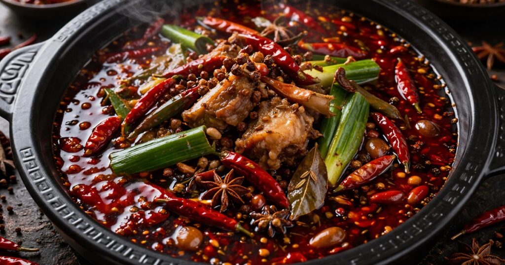 赤く煮え立つスープ、花椒の痺れる香り、そして大量の唐辛子は、一度食べたらやみつきになります。
