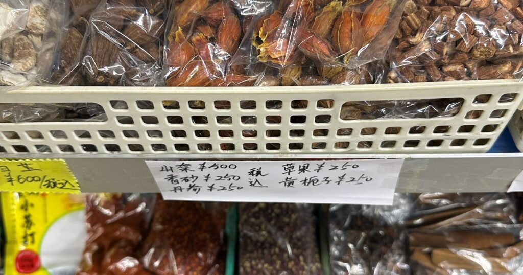 これに草果、花椒、唐辛子を買えばスパイスは揃います。