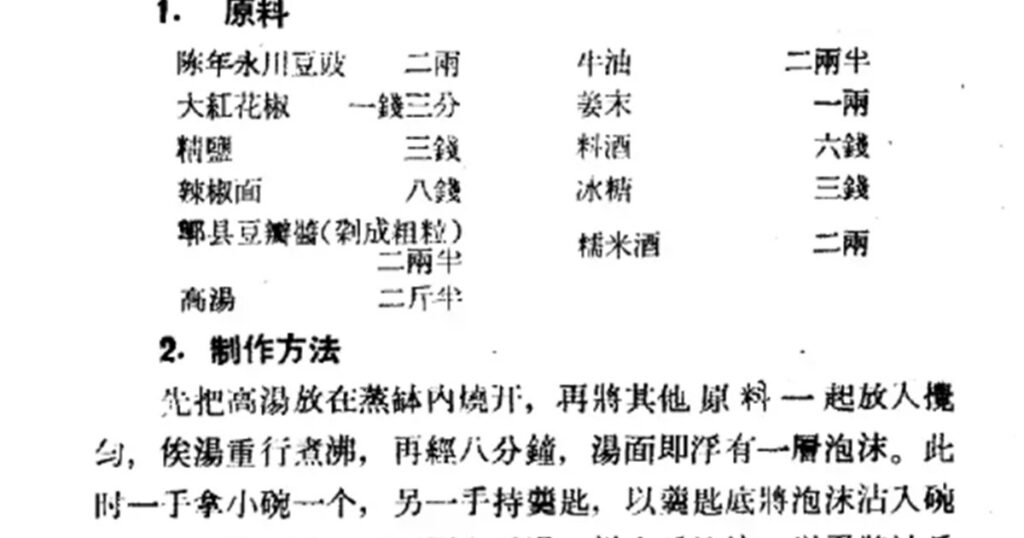 さらに1960年の『中国名菜譜』に基づいた、重慶毛肚火鍋(Chóngqìng máodù huǒguō)の伝統レシピ も紹介します。